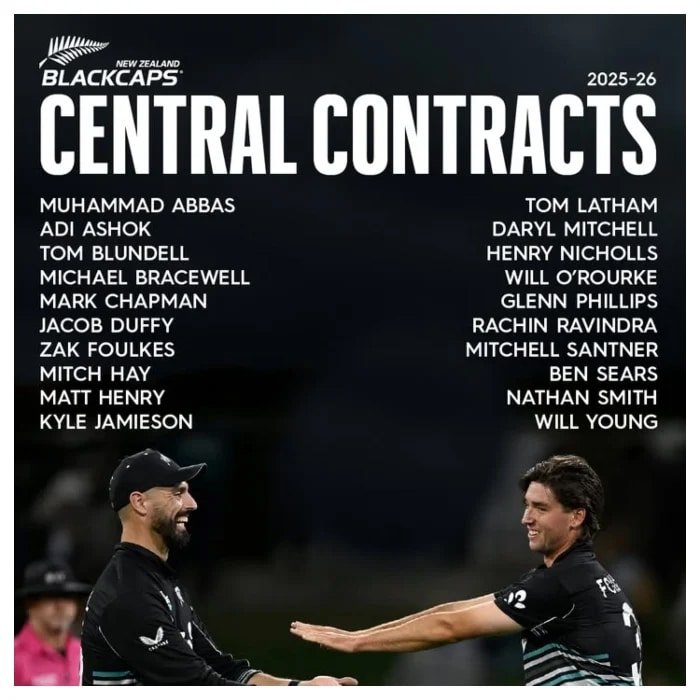 خیال رہے کہ نیوزی لینڈ کرکٹ نے 20 کرکٹرز کو سینٹرل کنٹریکٹس دیے ہیں۔