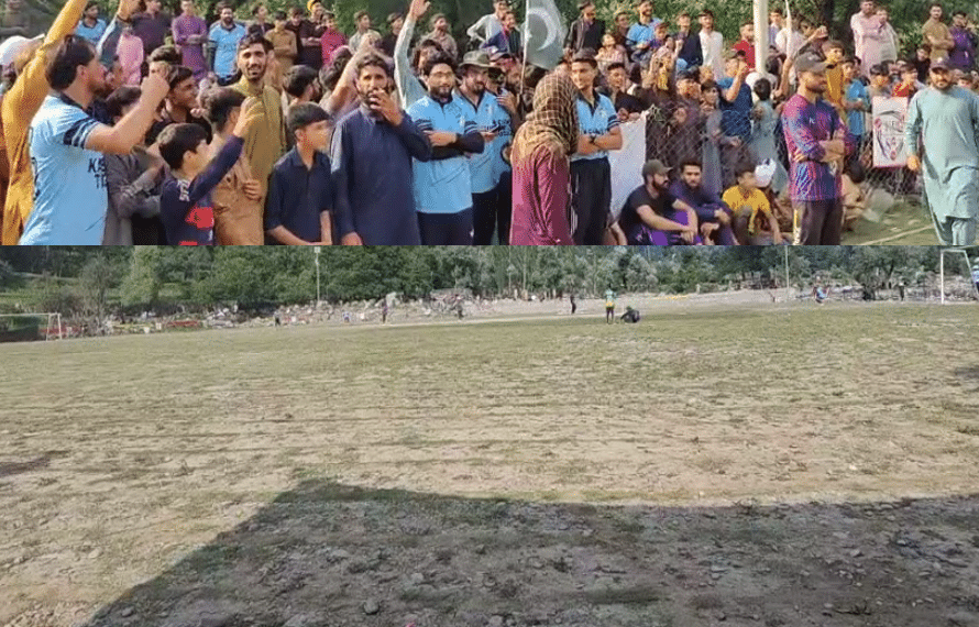 تماشائیوں کا جوش، ڈھول کی تھاپ اور نعرے، ہر لمحے کو یادگار بناتے رہے،گراؤنڈ میں فلسطین، کشمیر اور پاکستان کے جھنڈے لہرائے گئے،اور فضا میں فلسطین کے حق میں نعرے گونجتے رہے۔
