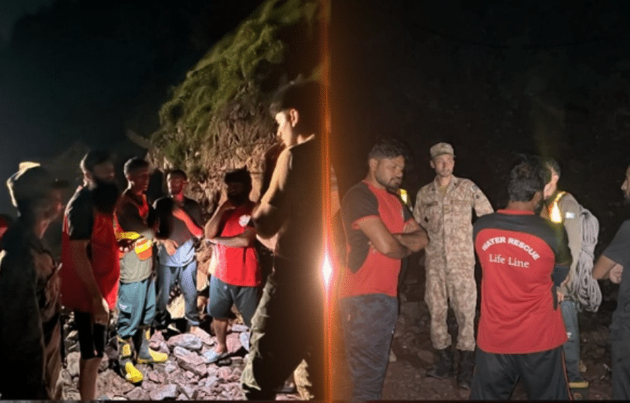 گڑھی دوپٹہ کے نواحی علاقے پٹھیالی روڈ پر لینڈ سلائیڈنگ اور سیلابی ریلے کے باعث تقریباً 80 افراد، جن میں سیاح بھی شامل تھے سڑک پر پھنس گئے تھے، پاک فوج اور سول اداروں نے فوری کارروائی کرتے ہوئے تمام افراد کو بحفاظت ریسکیو کر لیا۔