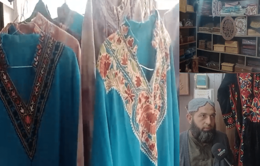 کیل میں دستیاب کشمیری روایتی لباس بھی اس شاپ کی خاص پہچان ہے۔ تصویر میں نظر آنے والا یہ روایتی “فیرن” (Pheran) کشمیری خواتین کا مخصوص لباس ہے جو سردیوں میں گرم رکھنے کے ساتھ ساتھ اپنی دلکش کشیدہ کاری کے باعث دنیا بھر میں مشہور ہے۔ یہ فیرن مخصوص کشمیری نقش و نگار سے مزین ہوتا ہے، جس پر ہاتھ سے رنگ برنگے دھاگوں سے کڑھائی کی جاتی ہے۔