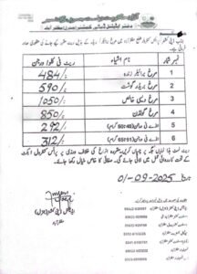 (کشمیر ڈیجیٹل): ضلعی انتظامیہ مظفرآباد نے مرغی، پھل اور سبزیوں کی نئی قیمتوں کا نوٹیفکیشن جاری کر دیا ہے، جس کے تحت دکانداروں کو ہدایت کی گئی ہے کہ ریٹ لسٹ نمایاں طور پر آویزاں کریں، بصورت دیگر قانونی کارروائی عمل میں لائی جائے گی۔