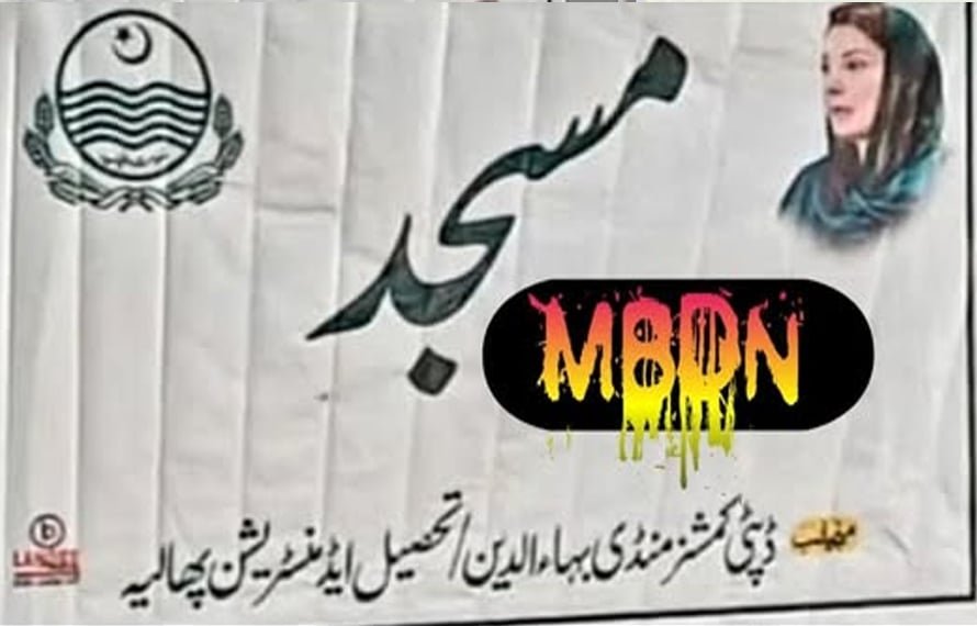 خیال رہے کہ منڈی بہاؤالدین میں سیلاب متاثرین کیلئے قائم فلڈ ریلیف کیمپ میں بنائی گئی مسجد کی دیوار پر بینر لگایا گیا تھا جس پر پنجاب حکومت کے لوگو کے سامنے مریم نواز کی تصویر بھی موجود تھی۔