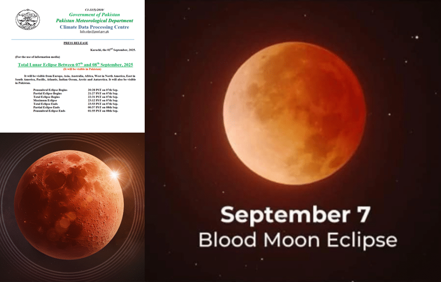 (کشمیر ڈیجیٹل) پاکستان سمیت دنیا کے مختلف خطوں میں 7 اور 8 ستمبر 2025 کی درمیانی رات کو مکمل چاند گرہن دیکھنے کو ملے گا۔ محکمہ موسمیات کے مطابق یہ گرہن یورپ، ایشیا، آسٹریلیا، افریقہ، شمالی امریکا کے مغربی حصے، جنوبی امریکا کے مشرقی حصے، بحرالکاہل، بحرِ اٹلانٹک، بحرِ ہند، آرکٹک اور انٹارکٹیکا میں بھی واضح طور پر نظر آئے گا۔