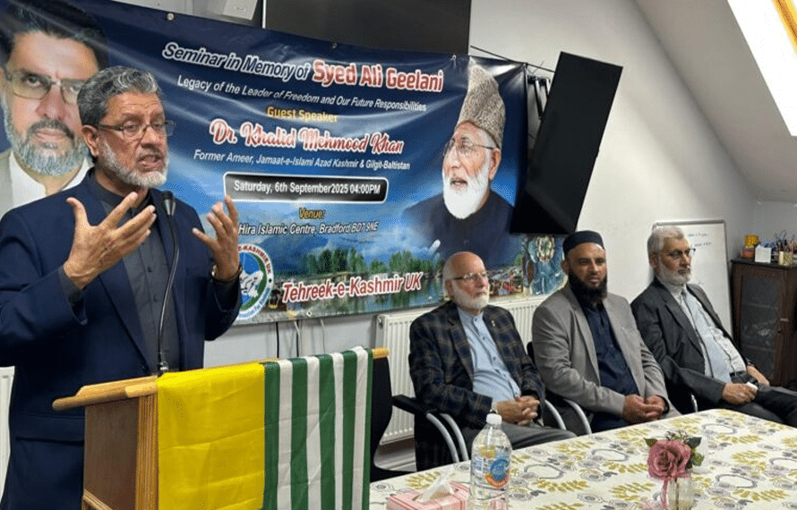 تحریک کشمیر برطانیہ نارتھ زون کے زیر اہتمام سید علی گیلانی شہید کانفرنس سے خطاب کرتے ہوئے ڈاکٹر خالد محمود نے کہا کہ قائد حریت کشمیر سید علی گیلانی نے ایسے لوگ تیار کیے ہیں کہ جو مشکل ترین حالات میں بھی بھارت کے خلاف برسر پیکار ہیں ۔