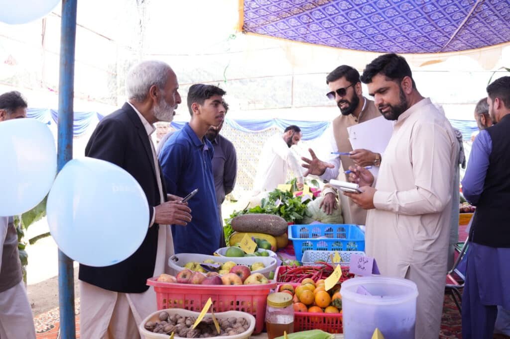 دھیرکوٹ (کشمیر ڈیجیٹل)سینکڑوں مقامی کسانوں نے سیب۔ سبزیات۔ شہد۔ زیتون۔ دیسی کھانوں۔ دستکاری۔ مقامی جڑی بوٹیوں۔سور ج مکھی۔ دیسی مرغیوں سمیت مختلف انواع کے پھلوں کے سٹالز لگائے۔