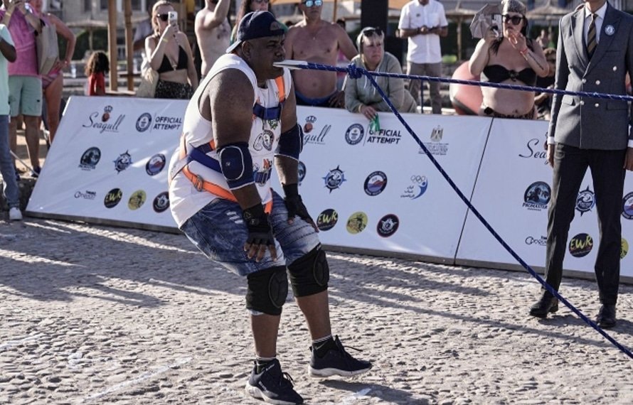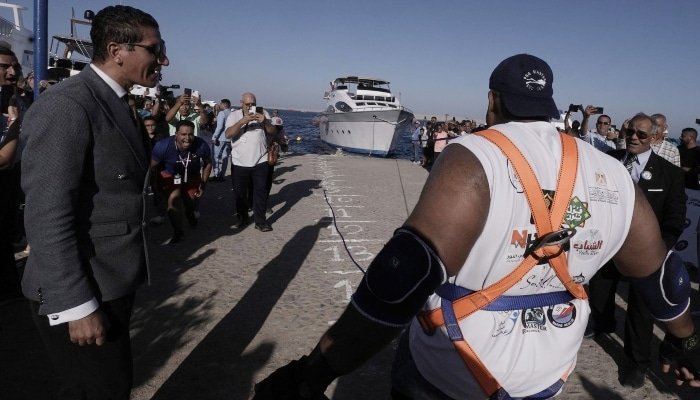 مصر سے تعلق رکھنے والے ایک پہلوان نے 700 ٹن (6 لاکھ 34 ہزار کلوگرام) وزنی بحری جہاز کو رسی کے ذریعے دانتوں سے کھینچ کر عالمی ریکارڈ قائم کر دیا ہے۔
