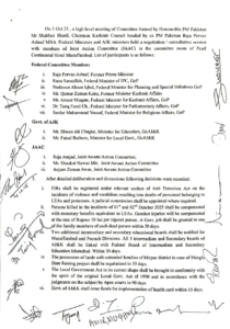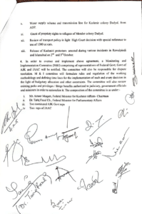 معاہدہ کے مطابق قانونی اور آئینی ماہرین پر مشتمل ایک اعلیٰ اختیاراتی کمیٹی امہاجر اراکین کے معاملے پر غور کریگی ، کمیٹی میں دوقانونی ماہرین کے علاوہ وفاقی حکومت، آزادکشمیر حکومت اور ایکشن کمیٹی کے نمائندے شامل ہونگے۔
