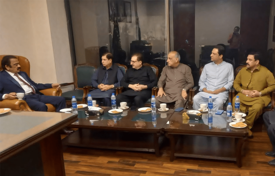 ذرائع کے مطابق مسلم لیگ ن کے وفد نے راناثنااللہ سے آزادکشمیر حکومت کے حوالے سے مشاورت کی کہ آیا اب حکومت میں رہنا ہے یا نہیں کیونکہ ن لیگ کے دو مہاجر وزرا راجہ صدیق اور احمد رضا قادری کابینہ سے فارغ ہونے جا رہے ہیں۔