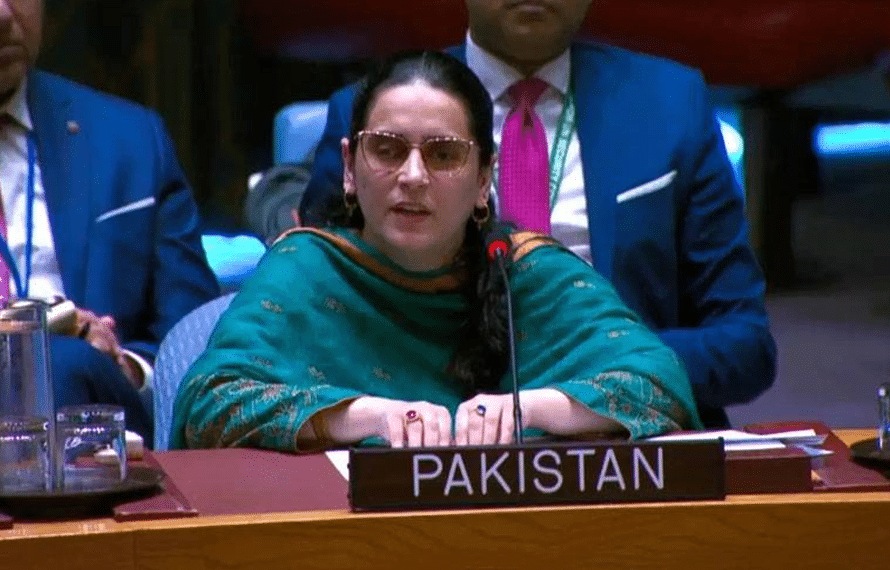 پاکستانی قونصلر صائمہ سلیم نے اپنے خطاب میں کہا کہ ان کا وفد بھارتی نمائندے کے بیان کے جواب میں اپنا حقِ جواب استعمال کر رہا ہے۔ انہوں نے کہا کہ پروپیگنڈا ظلم و ستم کو نہیں چھپا سکتا، اور انکار سے جھوٹ سچ نہیں بن جاتا۔ صائمہ سلیم نے کہا کہ وہ ناقابلِ تردید حقائق پیش کر رہی ہیں کہ مقبوضہ جموں و کشمیر بھارت کا نام نہاد “اٹوٹ انگ” کبھی نہیں رہا۔ ان کا کہنا تھا کہ سلامتی کونسل کی قراردادیں اس حقیقت کی گواہ ہیں کہ پاکستان نے کشمیری عوام کے ناقابلِ تنسیخ حقِ خود ارادیت کی غیر متزلزل حمایت کا ہمیشہ اعادہ کیا ہے۔