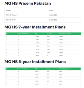 یہ منصوبہ صارفین کو قسطوں میں سہولت فراہم کرتا ہے کیونکہ وقت کے ساتھ انشورنس لاگت کم ہو جاتی ہے، جبکہ قرض کی مدت اور بنیادی قسطی ساخت وہی برقرار رہتی ہے۔ اگرچہ گاڑی کی کارکردگی اور دیکھ بھال کے کچھ چیلنجز موجود ہیں، تاہم ایم جی ایچ ایس کی مانگ میں کمی نہیں آئی۔ اس سے ظاہر ہوتا ہے کہ پاکستانی صارفین جدید اور فیچر سے بھرپور ایس یو وی کے لیے ادائیگی کرنے پر آمادہ ہیں، بشرطیکہ قسط کی شرائط مناسب ہوں۔