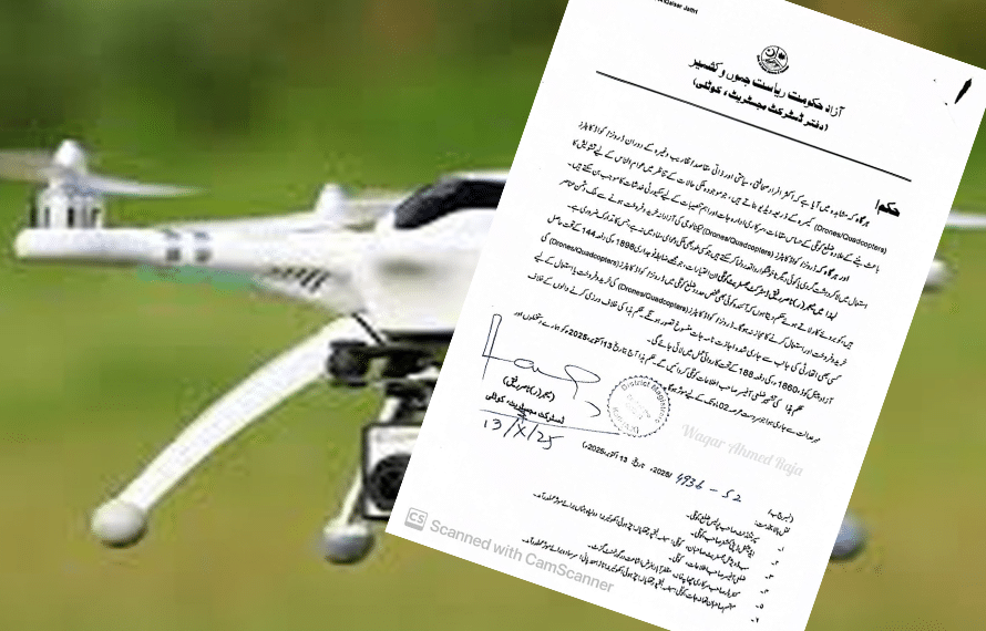 کوٹلی (کشمیر ڈیجیٹل) آزاد جموں و کشمیر کی ضلعی انتظامیہ کوٹلی نے عوامی سلامتی اور امن و امان کے تحفظ کے لیے ضلع بھر میں ڈرون اور کوآڈ کاپٹرز (Drones/Quadcopters) کے استعمال، خرید و فروخت اور پرواز پر مکمل پابندی عائد کر دی ہے۔