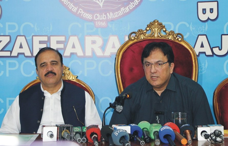 مظفرآباد(کشمیر ڈیجیٹل)وزیر خزانہ آزاد کشمیر عبدالماجد خان اور وزیر خوراک چوہدری اکبر ابراہیم کا حکومت سے علیحدگی کا اعلان،وزیر اعظم آزاد کشمیر پر سنگین الزامات، مہاجرینِ مقیمِ پاکستان کے حقوق غصب کرنے کا دعویٰ۔