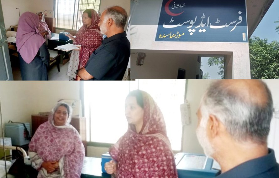فرسٹ ایڈ پوسٹ موڑھا سدھا کے دورے کے دوران ڈسٹرکٹ ہیلتھ آفیسر نے سینٹر کی عمومی صفائی ستھرائی، حاضری ریکارڈ، ادویات کا ریکارڈ، اور روزانہ کی کارکردگی کی پڑتال کی اور سروسز کو بہتر بنانے اور عوام الناس کو صحت کی بہترین سروسز باہم پہنچانے کے بارے میں سختی سے ہدایات جاری کیں