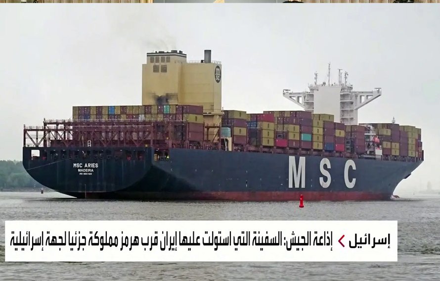 سرکاری خبر رساں ایجنسی IRNA کی رپورٹ کے مطابق “MCS Aries” نامی کنٹینر جہاز کو پاسداران انقلاب کی بحری اسپیشل فورسز نے ہیلی کاپٹر کے ذریعے قبضے میں لے لیا۔