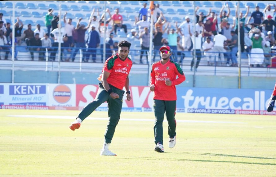 قبل ازیں، بنگلہ دیش نے پہلے بیٹنگ کرتے ہوئے بھارت کو 195 رنز کا ہدف دیا، بنگلہ دیش کی جانب سے رحمٰن سوہان نے شاندار 65 رنز کی اننگز کھیلی، ایس ایم مہروب 48 رنز بنا کر نمایاں رہے۔