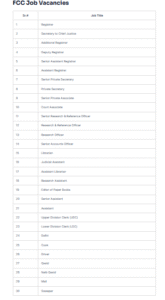 جاری کردہ فہرست کے مطابق رجسٹرار، سیکریٹری چیف جسٹس، ایڈیشنل رجسٹرار، ڈپٹی رجسٹرار، سینئر اسسٹنٹ رجسٹرار، اسسٹنٹ رجسٹرار، سینئر پرائیویٹ سیکریٹری، پرائیویٹ سیکریٹری، سینئر پرائیویٹ ایسوسی ایٹ، کورٹ ایسوسی ایٹ، سینئر ریسرچ اینڈ ریفرنس آفیسر، ریسرچ اینڈ ریفرنس آفیسر، ریسرچ آفیسر، سینئر اکاؤنٹس آفیسر، لائبریرین، جوڈیشل اسسٹنٹ، اسسٹنٹ لائبریرین، ریسرچ اسسٹنٹ، ایڈیٹر آف پیپر بکس، سینئر اسسٹنٹ، اسسٹنٹ، یو ڈی سی، ایل ڈی سی، ڈفتری، کک، ڈرائیور، قاصد، نائب قاصد، مالی اور سویپر سمیت کل 30 مختلف پوسٹس شامل ہیں۔
