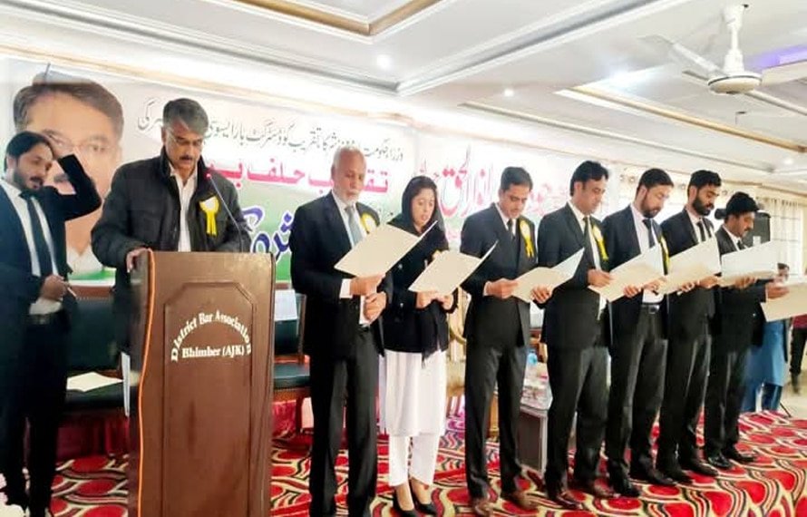 بھمبر(کشمیر ڈیجیٹل ) وزیر اعظم آزادکشمیر چوہدری انوار الحق نے ڈسٹرکٹ بار بھمبر کے نومنتخب عہدیدران سے حلف لیا ،وزیراعظم آزادکشمیرانوارالحق نے بھمبربار کی تقریب سے خطاب کرتے ہوئے کہا کہ پاکستان کو غیر مستحکم کرنے کی دشمن کی سازشیں ناکام ہونگی،بھارتی شرانگیزی سے تحفظ کیلئے ہمیں تیار رہنا ہوگا۔