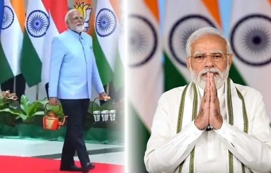 ویڈیو میں نریندر مودی کو ہاتھ میں چائے کی کیتلی اور کپ اٹھائے ریڈ کارپٹ ایونٹ میں چائے بیچتے دکھایا گیا ہے اور پس منظر میں بین الاقوامی سربراہی اجلاس یا عالمی تقریب جیسا منظر دکھانے کی کوشش کی گئی ہے۔