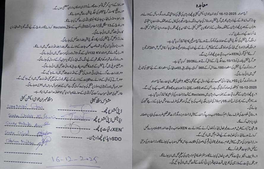 مذاکرات میں طے پایا کہ فوری طور پر عوام کو سہولت دینے کے پیش نظر 22دسمبر2025تک ٹاور کی مکمل تنصیب اور فعالیت تک شہری علاقوں میں 3سے 4 گھنٹے لوڈ شیڈنگ کی جائے گی جبکہ دیہی علاقوں میں لوڈ شیڈنگ کا دورانیہ 15 سے 16 گھنٹوں پر مشتمل ہوگا جس کا شیڈول جاری کیا جائیگا۔