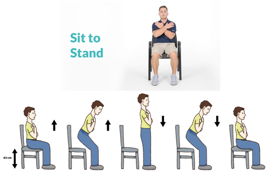 STS ٹیسٹ میں یہ دیکھا جاتا ہے کہ کوئی شخص 30 سیکنڈ میں کتنی بار مکمل طور پر بیٹھ کر کھڑا ہو سکتا ہے۔ یہ ٹیسٹ عموماً بزرگ افراد کے لیے کلینک یا کمیونٹی سیٹنگز میں کیا جاتا ہے، لیکن اسے گھر پر بھی آسانی سے انجام دیا جا سکتا ہے۔