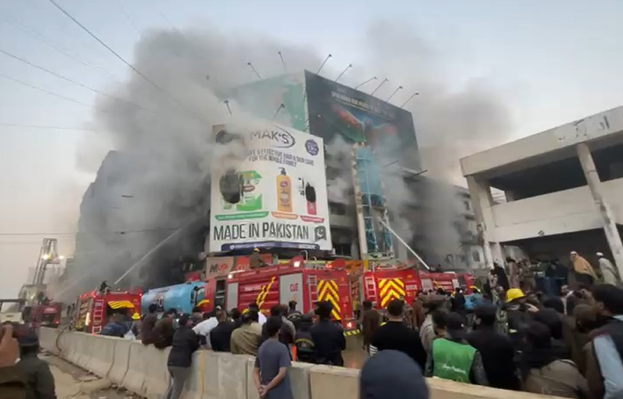 ہفتے کی رات سوا 10 بجے کے قریب گل پلازہ میں لگنے والی آگ تاحال مکمل طور پر نہ بجھائی جا سکی، گراؤنڈ فلور پرلگنے والی آگ دیکھتے ہی دیکھتے تیسری منزل تک پہنچ گئی۔