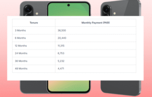 گلیکسی A36 5G میں 8GB RAM اور 256GB اسٹوریج موجود ہے، اور اس کی قیمت 109,500 روپے ہے۔ متعدد قسطی منصوبے دستیاب ہیں، اور جو صارفین نور کارڈ کے بغیر ہیں وہ آن لائن درخواست دے کر یہ آفرز حاصل کر سکتے ہیں: https://apply.faysalbank.com/noor-card/