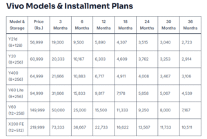نیچے دی گئی تفصیلات کے مطابق، مختلف ماڈلز کی قیمتیں اور ماہانہ اقساط درج ذیل ہیں: