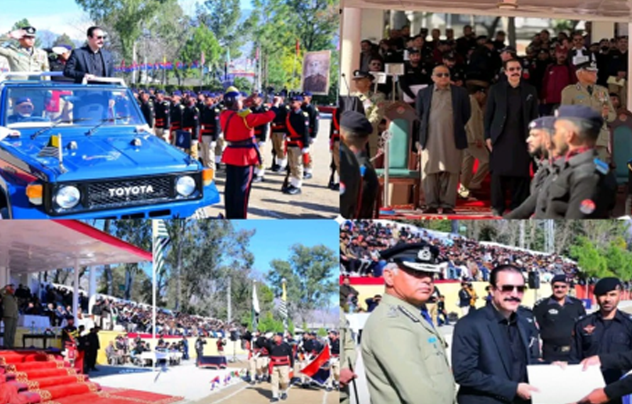مظفرآباد: آزاد جموں و کشمیر پولیس کی 61 ویں پاسنگ آؤٹ پریڈ کی پروقار تقریب پولیس ٹریننگ اسکول مظفرآباد میں منعقد ہوئی، جس میں وزیر اعظم آزاد کشمیر فیصل ممتاز راٹھور نے بطور مہمانِ خصوصی شرکت کی۔ تقریب کے دوران پولیس کے چاق و چوبند دستوں نے وزیر اعظم کو سلامی پیش کی اور شاندار مارچ پاسٹ کا مظاہرہ کیا۔