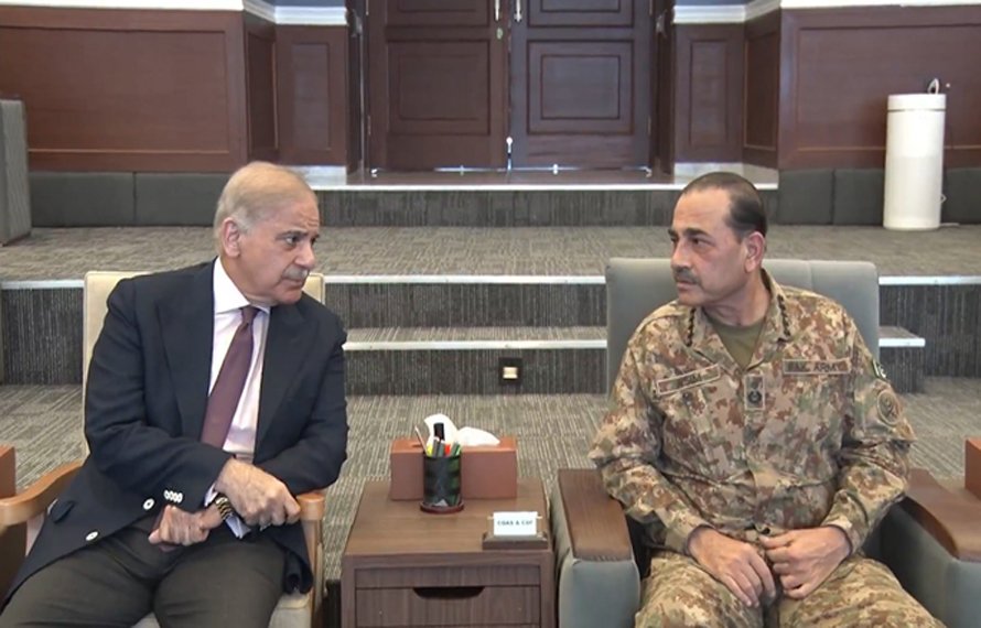 وزیرِ اعظم پاکستان شہبازشریف نے جی ایچ کیو راولپنڈی کا دورہ کیا جہاں عسکری قیادت نے وزیرِاعظم کو پاکستان افغانستان کی صورتحال پرمفصل بریفنگ دی۔