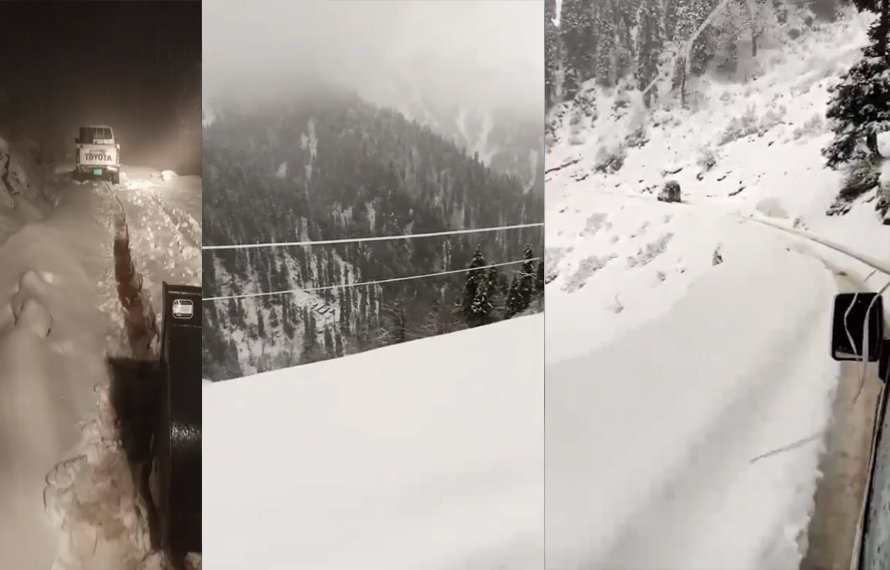 شدید برف باری کی وجہ سے گاڑیوں کا نکلنا ناممکن ہو چکا تھا ،محکمہ شاہرات کے ملازمین کی مکمل کوشش کے ساتھ مشینوں کے ذریعے پھنسی ہوئی گاڑیوں کو مشین کے ذریعے ریسکیو کرلیا گیا ہے۔