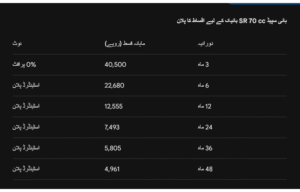 فیصل بینک کے ترجمان نے اس بارے میں بات کرتے ہوئے کہا کہ ہمارا مقصد گاہکوں کو روزمرہ سفر کی سہولت کے لیے سستے آپشنز فراہم کرنا ہے۔ ہمارے لچکدار اقساط کے منصوبے گاہکوں کے لیے ہائی سپیڈ SR 70 cc موٹر سائیکل خریدنا آسان بناتے ہیں۔