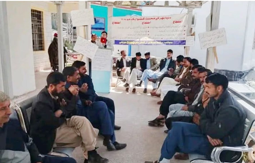 ہیلتھ ملازمین کی طویل ترین ہڑتال کا سلسلہ جاری ہے ۔ ملازمین اپنے مطالبات کے حق میں ہسپتال کے احاطے میں احتجاج کر رہے ہیں۔