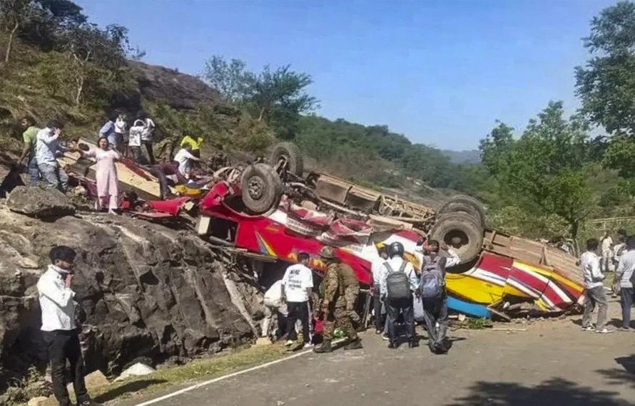 بس سڑک سے ہٹ کر تقریباً 30 میٹر (100 فٹ) نیچے کھائی میں گر گئی۔ایسوسی ایٹڈ پریس نیوز ایجنسی کے مطابق سنگھ نے کہا کہ 19 مسافروں کی موقع پر ہی موت ہو گئی جبکہ دو دیگر نے ان کے نکالنے کے بعد ہسپتال میں دم توڑ دیا۔