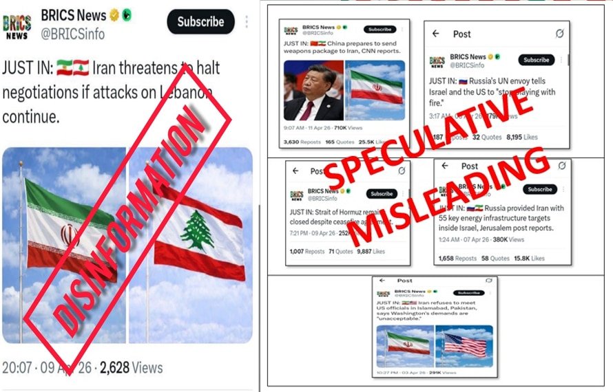 سوشل میڈیا پلیٹ فارم X (سابقہ ٹوئٹر) پر موجود اکاؤنٹ @BRICSinfo کے بارے میں مبصرین نے خدشات کا اظہار کیا ہے کہ یہ خود کو BRICS سے منسلک ظاہر کرتے ہوئے ممکنہ طور پر گمراہ کن معلومات پھیلا رہا ہے۔