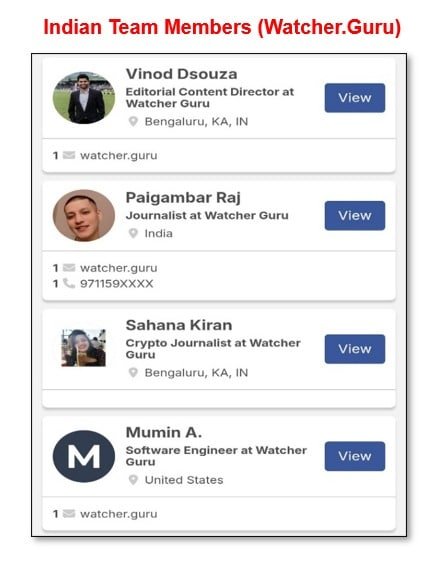 واچر گرو کے بانی اور ٹیم کے ارکان ہندوستان / ہندوستانی نژاد ہیں جو اکاؤنٹ کی مشکوک نوعیت کی مزید تصدیق کرتے ہیں۔